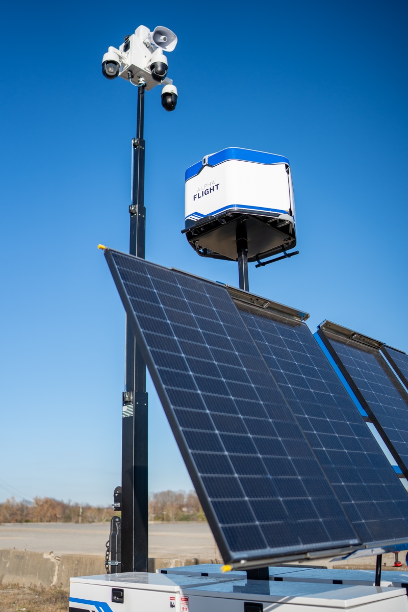 Alpha Flight combines the proven capabilities of the Alpha mobile surveillance unit (MSU) with an integrated autonomous drone, delivering rapid response, expanded visibility, and unmatched adaptability. This advanced system allows for coverage beyond traditional ground-based surveillance, the ability to track unwanted activity, and operate through predetermined flight paths or manual control as needed.